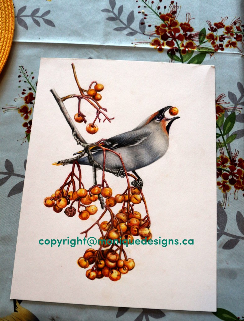 I actually love drawing birds. This is an illustration of a Wax Wing (photo ref Ben Jenkins) that I just completed. I have a small series of birds completed and have just ordered a light box. I’ll take professional photos and then I’ll be able to offer prints for sale on my online store. I expect to have it all up and running very soon. Please visit again in March to view my product offerings! (Wax Wing, 9″x12″ Coloured Pencils on Acid-Free paper). I will not be offering the Wax Wing as a print but the original is for sale. If interested, contact me.